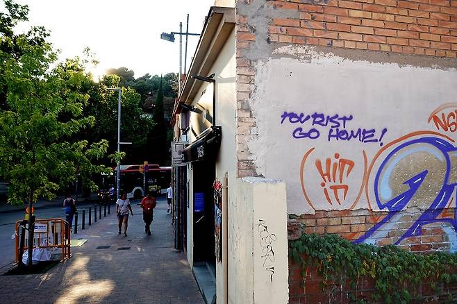 스페인 바르셀로나에서 평생 살아온 에스테르 토레스(Esther Torres·57)는 지난 6월 30일(현지시간) 저녁 산책을 나와 이처럼 말했다. 그녀가 나온 건물 외벽에는 누군가 적은 '관광객은 집에 가라(Tourist Go Home)'는 영어 문구가 적혀 있었다.