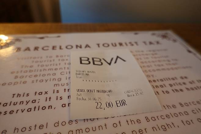 | ▲ 기자와 일행 1명이 함께 6월 30일부터 시내 호스텔에 2박 머물러 총 22유로(약 3만 5천 원)의 관광 세금을 내고 발급받은 영수증 |
