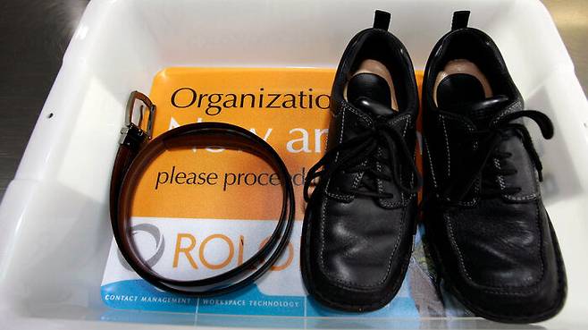 ▲ 공항 보안 검색대에 벗어놓은 신발