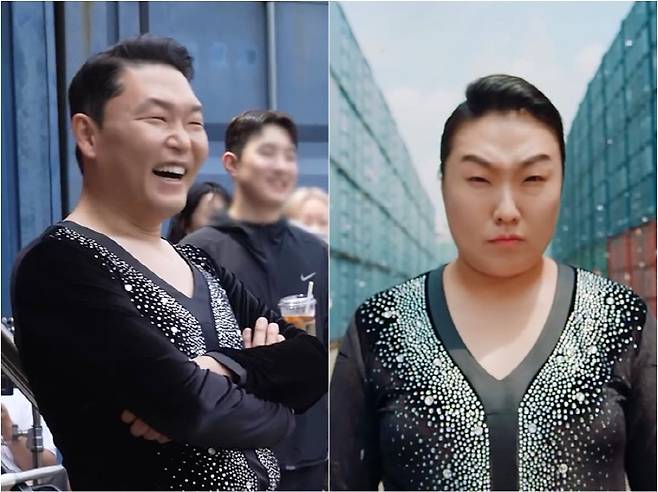 영상에서 이수지가 등장하자 싸이는 "나 나인줄 알았어"라고 웃었다.