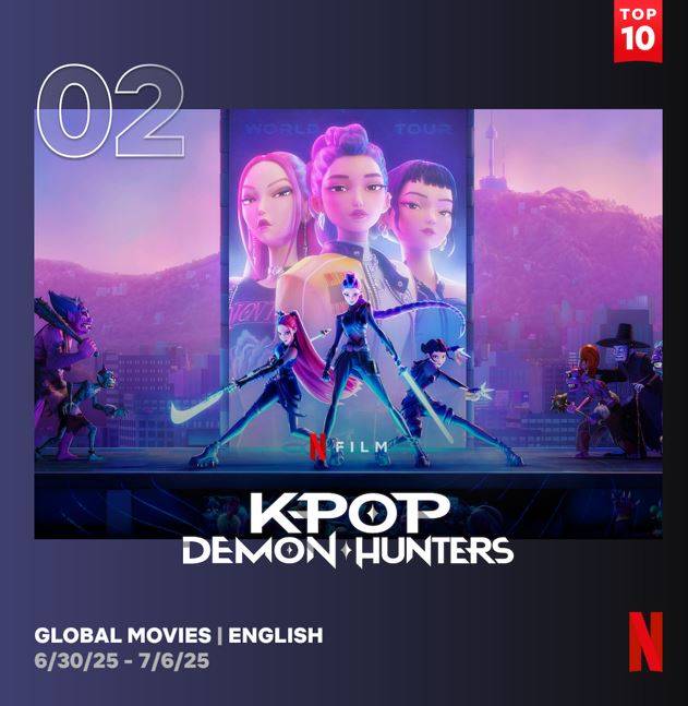 한편 영화(영어) 부문에서 1위를 차지했던 '케이팝 데몬 헌터스'는 2위로 내려갔다. 3780만 시간, 2270만 시청수를 기록했다. 1위는 '올드 가드 2'다.