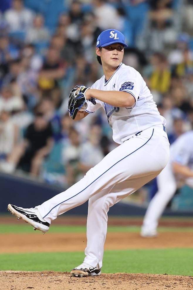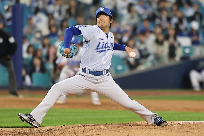 8일 창원 NC전도 베테랑 불펜들이 올라올 때마다 얻어맞으면서 역전패한 삼성이다. 7-4로 앞선 6회 삼성은 마운드에 김재윤을 올렸다. 지난 시즌을 앞두고 4년 총액 58억원을 받고 삼성으로 둥지를 옮긴 김재윤은 올 시즌을 마무리로 시작했지만, 이제는 필승조와 추격조의 경계에 선 투수가 됐다. 이날도 6회에 올라오자마자 1실점하면서 스타일을 구겼다.