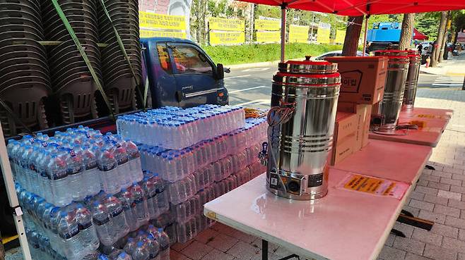 폭염에 대비해 더위를 식힐 생수도 한가득 준비됐습니다.