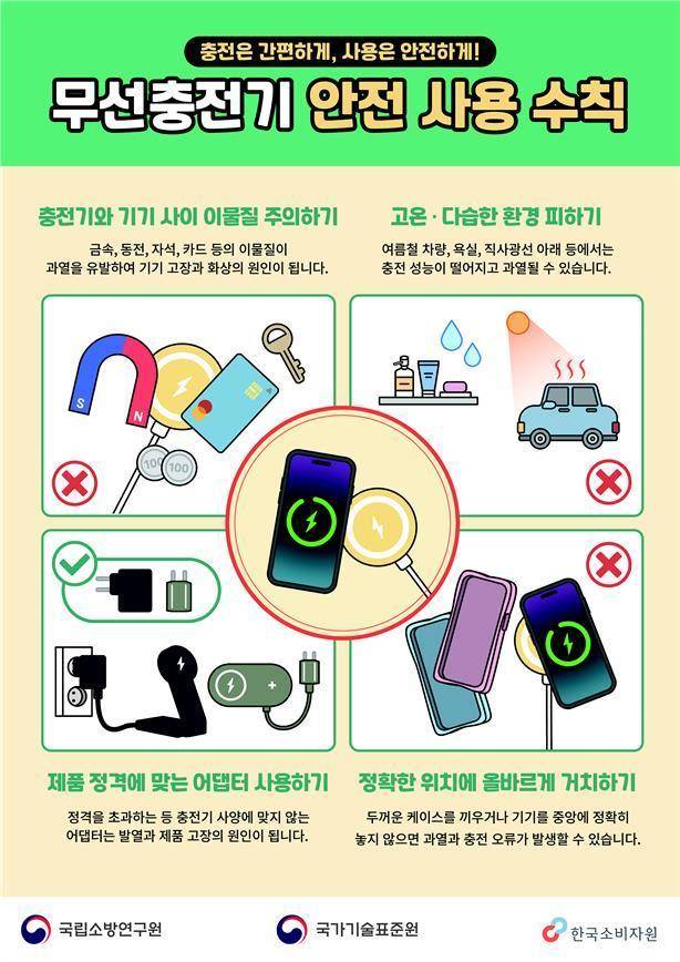 이들 기관은 무선충전기 안전 사용 수칙을 담은 홍보 포스터를 만들어 소비자 단체, 사회관계망서비스(SNS) 등을 통해 배포할 계획입니다.