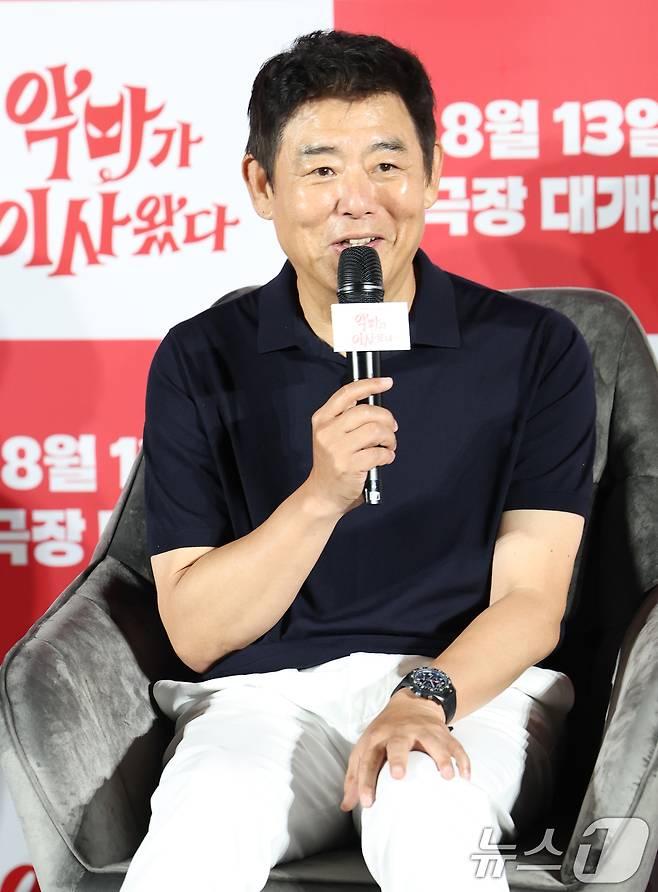 (서울=뉴스1) 권현진 기자 = 배우 성동일이 9일 서울 용산구 CGV용산아이파크몰에서 열린 영화 '악마가 이사왔다‘(감독 이상근) 제작보고회에 참석해 인사말을 하고 있다.
