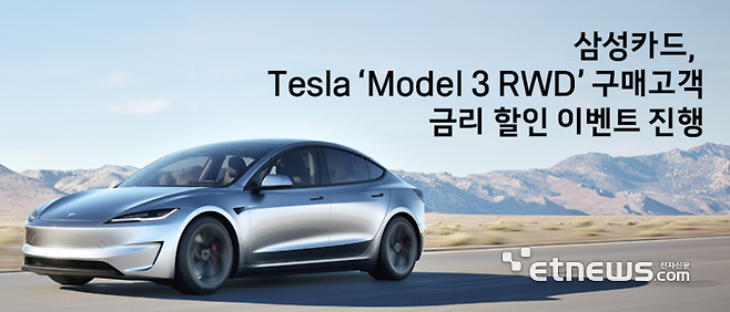 삼성카드는 테슬라 'Model 3 RWD' 차량을 구매하는 고객을 위한 금리 할인 이벤트를 진행한다고 9일 밝혔다.