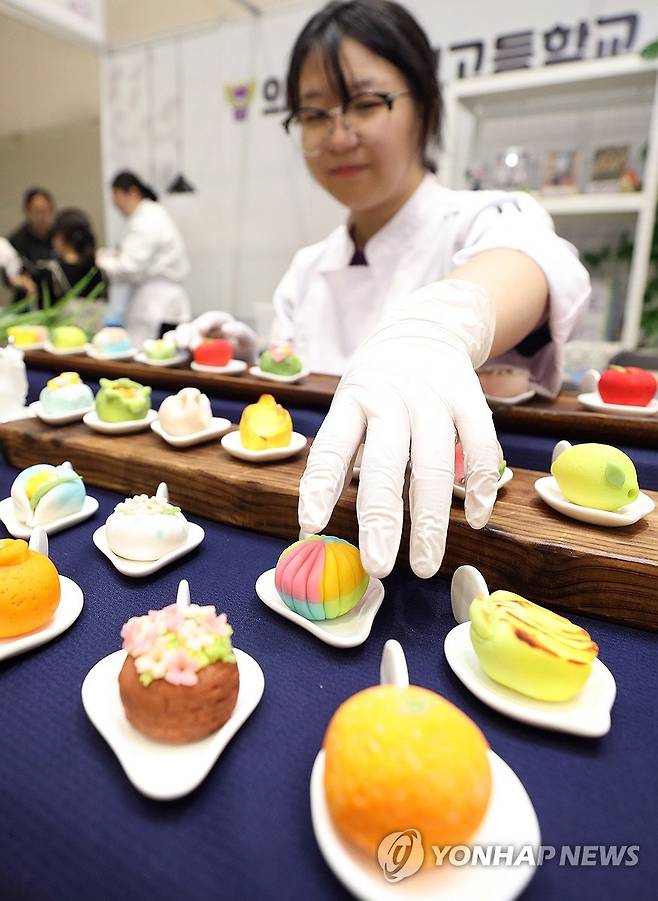 (구미=연합뉴스) 김현태 기자 = 9일 경북 구미시 구미코(GUMICO)에서 '2025 경상북도교육청 직업교육박람회 Go Together'에서 의성 유니텍 고등학교 학생이 직접 만든 다양한 디저트를 선보이고 있다. 경북교육청 직업교육박람회는 올해로 27회째를 맞는다. 이번 박람회는 도내 60여 개 특성화 고등학교와 기관, 32개 기업체가 참여해 오는 10일까지 체험 부스와 현장 채용관 등을 운영한다. 2025.7.9