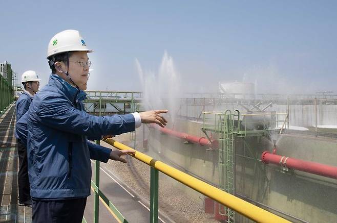 [서울=뉴시스] 윤창현 산업통상자원부 자원산업정책국장이 9일 경기 평택시 한국가스공사 평택LNG생산기지 및 공급 관린소를 찾아 안전점검을 하고 있다.(사진=산업통상자원부 제공) 2025.07.09. photo@newsis.com *재판매 및 DB 금지