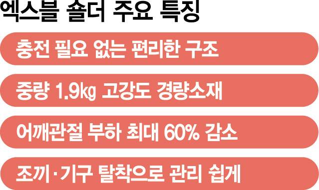 한편 엑스블 숄더는 2월 유럽연합(EU)의 통합 인증마크 등록 기관인 DNV로부터 ‘ISO 13482 인증’을 받으며 안전성을 입증했다. 또 세계 3대 디자인상 중 하나인 ‘2025 iF 디자인 어워드’에서 제품 부문 본상을 거머쥐며 디자인 우수성도 인정받았다.