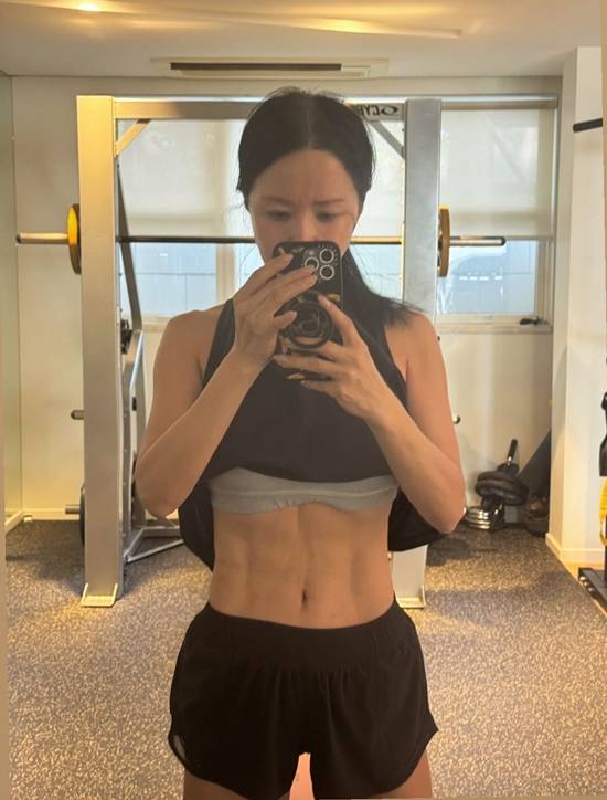(엑스포츠뉴스 윤현지 기자) 가수 겸 배우 엄정화가 군살 없는 탄탄한 복근을 자랑했다.