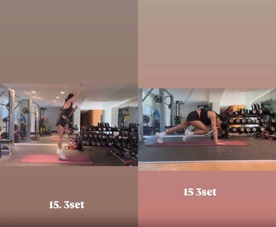 또한 강도 높은 인터벌 운동을 15번 3세트 씩 해내는 영상을 올려 몸매 관리 비법을 알리기도 했다.