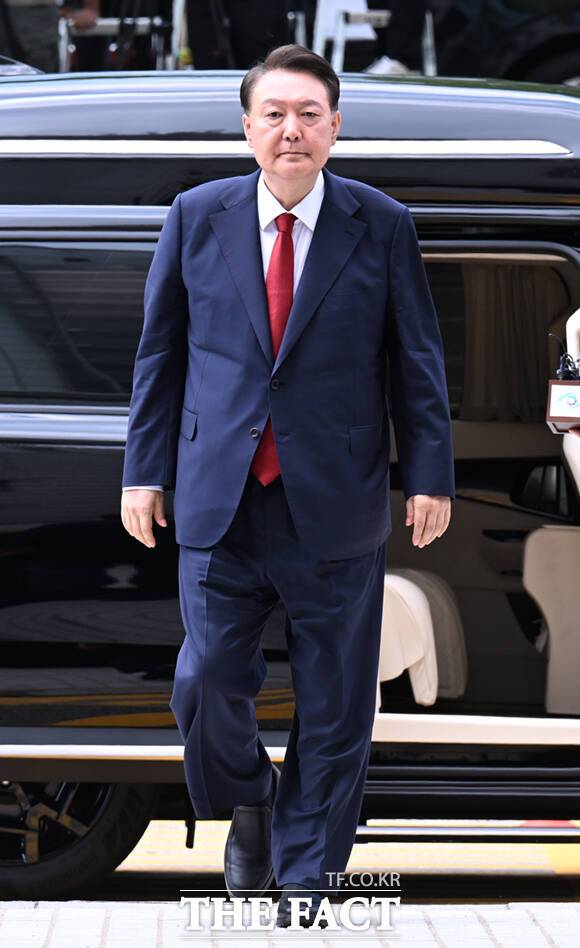 '붉은 넥타이, 옅은 미소에 침묵' 구속 기로 선 윤석열 [TF사진관]