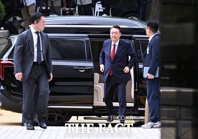 [더팩트ㅣ이새롬 기자] 12·3 불법 계엄 사태로 조은석 내란 특별검사팀의 수사를 받는 윤석열 전 대통령이 9일 오후 서울 서초구 서울중앙지방법원에서 열린 구속 전 피의자 심문(영장실질심사)에 출석하고 있다.