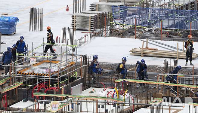 [서울=뉴시스] 김근수 기자 = 연일 폭염이 지속되는 가운데 9일 서울 시내의 건설현장 노동자들이 건축자재를 나르고 있다. 2025.07.09. ks@newsis.com