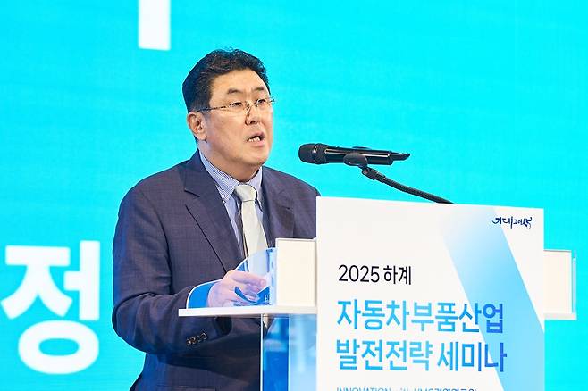 그는 현대자동차그룹의 자동차용 소프트웨어 브랜드 ‘플레오스(PLEOS)’ 출범 사례를 언급하며 “앱 생태계 조성까지 나아가는 움직임은 단순한 부품 공급을 넘어선 사고 전환을 요구한다”고 지적했다. 이와 함께 외형보다는 기술력과 품질 중심의 경쟁력이 절실한 시점이라는 점을 지적하며 최근 미국의 대(對)한·일 관세 부과 방침, 중국의 전기차 시장 과열과 정부 개입 확대 등을 거론했다.