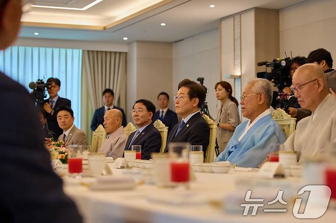 (서울=뉴스1) 허경 기자 = 이재명 대통령이 9일 서울 용산 대통령실에 종교 지도자를 초청해 오찬 간담회를 하고 있다. (대통령실 제공. 재판매 및 DB 금지) 2025.7.9/뉴스1