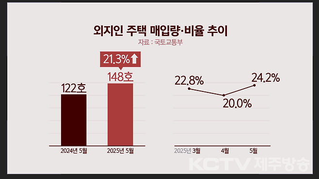 지난 5월 외지인의 도내 주택 매입량은 지난해 같은 달보다 21.3% 늘었습니다.