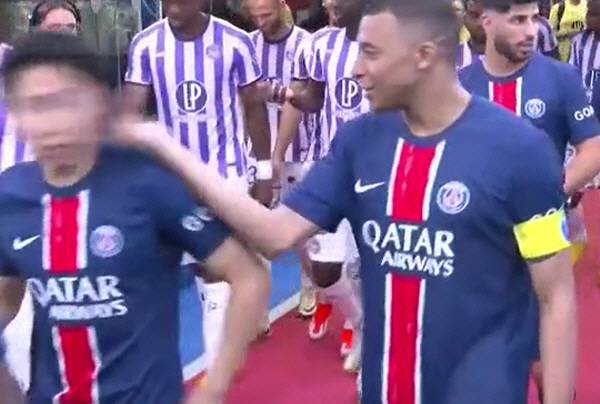 이강인은 2024년 5월 PSG 홈구장 파르크 데 프랭스에서 열린 툴루즈와의 2023~2024시즌 프랑스 리그앙 경기에서도 '꽁냥꽁냥' 장난을 쳤다. 경기 전 입장할 때 음바페가 이강인의 뺨을 툭 건드리는 장면이 카메라에 담겼다. 경기 후 리그 우승을 기념하는 시상식에선 이강인이 음바페의 엉덩이에 '왼발 슛'을 날렸다. 그 정도로 가까웠다.