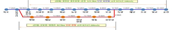 이 노선이 개통되면 목포와 보성을 오가는 데 걸리는 시간은 기존 2시간 16분(광주 경유)에서 1시간으로 크게 줄어든다.