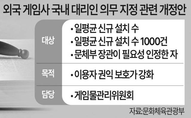 전년 매출 1조원이나 일 평균 실규 설치 수 1000건에 해당되는 해외 게임사는 국내 대리인을 의무적으로 지정해야 한다.