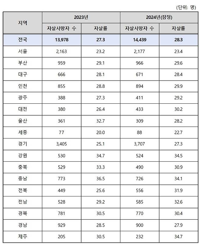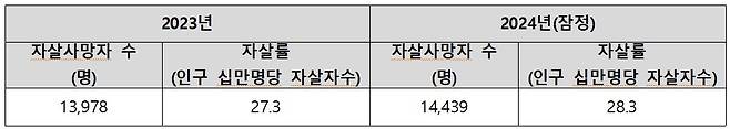 지난 한 해 우리나라 자살사망자 수가 1만4439명(잠정)인 것으로 집계됐다.