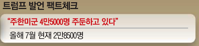 트럼프 대통령은 이 과정에서 주한미군 규모를 4만5000명이라고 잘못된 수치를 언급했다. 현재 주한미군 규모는 약 2만8000명이다.