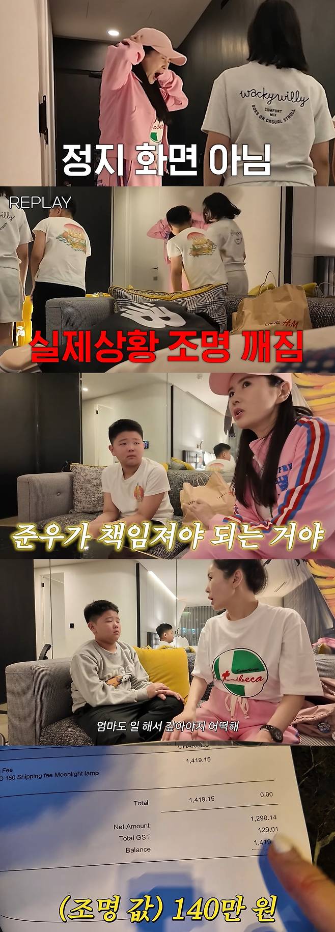 곧바로 호텔방을 찾은 직원은 깨진 조명을 사진으로 남겼고 비용이 발생할 것이라고 설명했다. 장영란은 준우에게 "준우 용돈에서 조명 값을 뺄 수밖에 없다. 200만원 물어달라고 하면 어쩔래. 준우 200만원 없잖아. 준우가 책임 져야하는 거야"라고 훈육했고 준우는 12년 평생 모은 50만원을 장영란에게 주기로 했다.