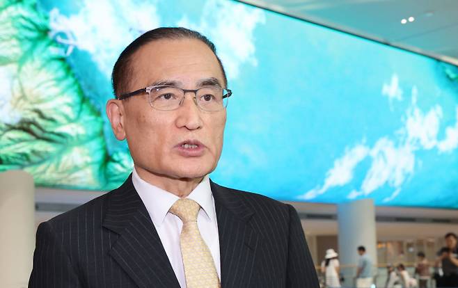 [통상·안보 현안을 논의하기 위해 미국을 방문했던 위성락 국가안보실장이 9일 인천국제공항 제2터미널을 통해 귀국한 뒤 취재진의 질문에 답하고 있다. (영종도=연합뉴스)]