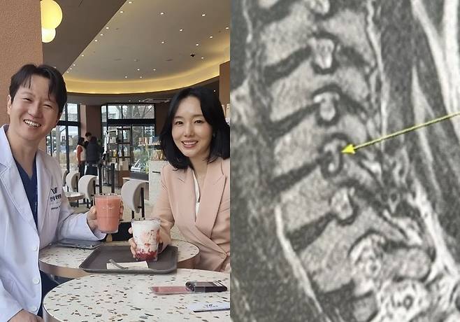 공개된 사진에는 아픈 부분의 엑스레이 사진과 함께 회복 이후 의사인 남편과 병원 라운지에서 음료를 마시며 여유로움 시간을 보내는 모습의 사진도 함께 개재되었다.