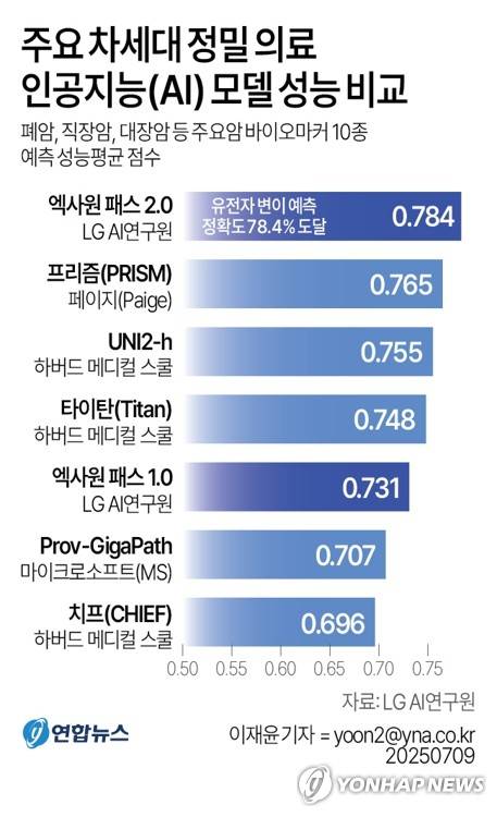 [그래픽] 주요 차세대 정밀 의료 인공지능(AI) 모델 성능 비교