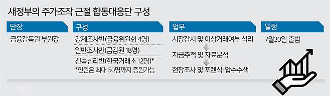정부는 관계 금융부처가 참여하는 '주가조작 합동 대응단'을 출범시키는 한편 주식시장 불공정 행위자 및 세력에 대해선 즉시 퇴출하는 '원스트라이크 아웃' 원칙을 도입하기로 했다.