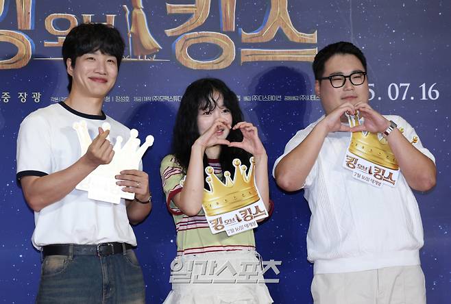 김기리·문지인 부부, 배우 김요한이 9일 오후 서울 강남구 메가박스 코엑스점에서 열린 영화 '킹 오브 킹스' VIP시사회에 참석해 포토타임을 갖고 있다.