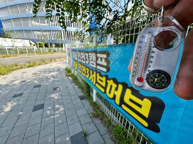 이날 오전 9시부터 센터 앞 주차장 위로는 아지랑이가 피어올랐고, 노동자들의 손마다 쥐어진 선풍기가 눈에 띄었다.