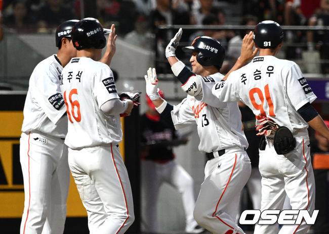 4회말 2사 1,3루에서 한화 최재훈이 좌월 스리런 홈런을 치고 환호하고 있다. 2025.07.08 /sunday@osen.co.kr