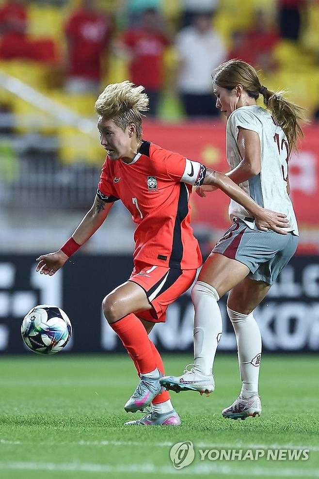 (서울=연합뉴스) 윤동진 기자 = 9일 수원월드컵경기장에서 열린 2025 동아시아축구연맹(EAFF) E-1 챔피언십(동아시안컵) 여자부 대한민국 대 중국 경기. 이금민이 드리블하고 있다. 2025.7.9