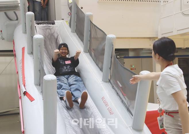 교육은 현직 객실승무원 훈련을 담당하는 전문 훈련 교관의 지도하에 진행됐으며, △객실승무원 업무 소개 △ 화재진압 실습 △기내 서비스 실습 △비상 상황 종합 체험 △비상 슬라이드 체험 등 항공 안전 교육 프로그램으로 구성되었다.