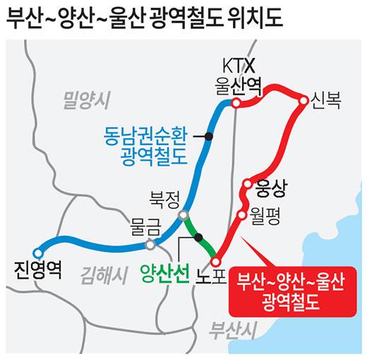 당초 기획재정부의 7월 초 발표가 예고됐으나 새 정부 출범으로 정부 부처 장·차관 인선 시기와 맞물리며 연기된 것으로 알려졌다. 이 사업은 부울경의 핵심축을 관통해 부산(노포)~양산(웅상)~울산(KTX울산역)을 잇고, 부산1호선, 정관선, 양산선, 울산 1호선 등 단절된 4개의 도시철도와 연결된다. 총연장 48.7㎞ 구간 노선으로 11곳의 정거장이 설치되며 부울경을 1시간 생활권으로 묶는 광역 철도망이다.