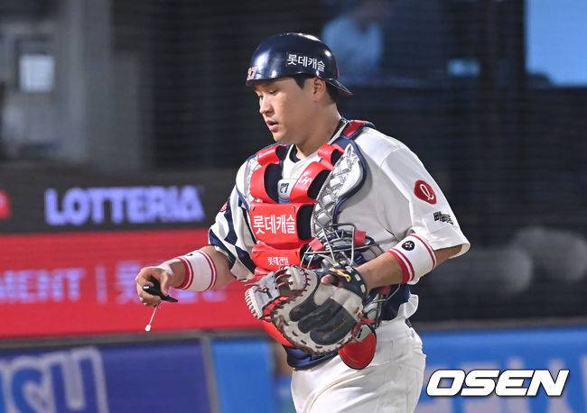 롯데 자이언츠 유강남이 연장 11회초 무사 1루 두산 베어스 박계범 타석때 교체되고 있다. 2025.07.09 / foto0307@osen.co.kr