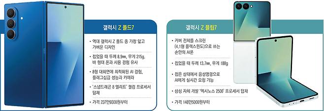 가격 장벽은 여전하다. Z폴드7 가격은 237만9300원부터로 전작보다 15만원가량 인상됐다. Z플립7 가격은 동결돼 148만5000원부터 시작한다. 삼성전자는 전작과 비슷한 제원에 AI 기능을 더한 Z플립7 FE도 119만9000원에 선보인다. 가격 때문에 폴더블폰 구매를 망설이는 고객을 붙잡기 위해서다. 이들 신제품은 오는 25일부터 전 세계에 순차 출시된다. 국내에선 15일부터 사전 판매에 들어간다.
