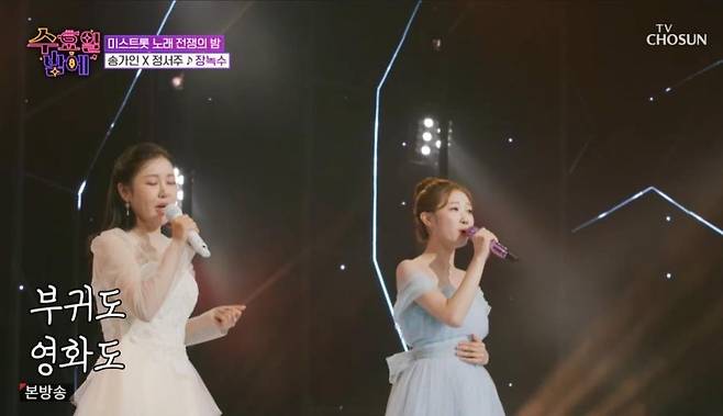 '미스트롯1' 진 송가인과 '미스트롯3' 진 정서주의 첫 듀엣 무대가 펼쳐진 것.