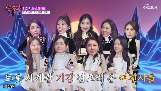 9일 방송된 TV CHOSUN 예능 프로그램 '트롯 올스타전: 수요일 밤에'(이하 '수밤') 12회는 '미스트롯1' VS '미스트롯3' 대격돌의 밤으로 꾸며졌다.