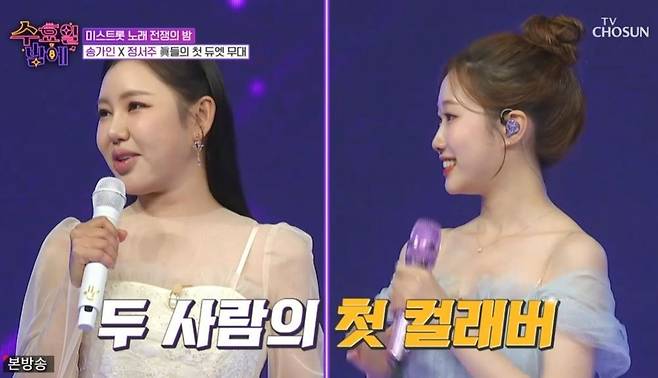 '미스트롯1' 진 송가인과 '미스트롯3' 진 정서주의 첫 듀엣 무대가 펼쳐진 것.