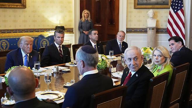 트럼프 대통령 취임 후 세 번째로 방미 중인 네타냐후 총리는 지난 7일 만찬에 이어 전날 오후에도 백악관 집무실에서 트럼프 대통령과 또 만났습니다.
