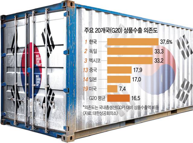 관세충격에 취약한 한국 경제… 상품 수출 의존도 G20 중 1위