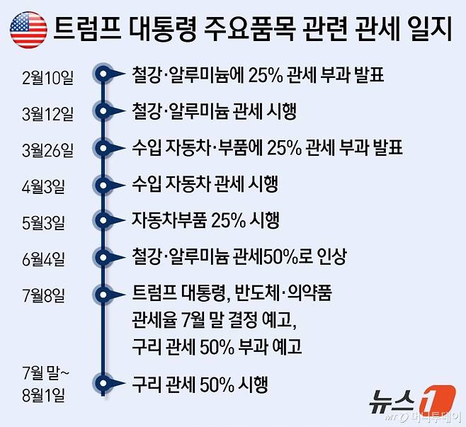 트럼프 대통령은 당초 90일 유예를 거쳐 이달 9일부터 부과할 예정이던 상호관세를 다음달 1일부터 발효하는 것으로 미루면서 지난 7일부터 한국을 비롯한 각국 정상에 새로 조정한 상호관세을 적시한 서한을 발송하기 시작했다.