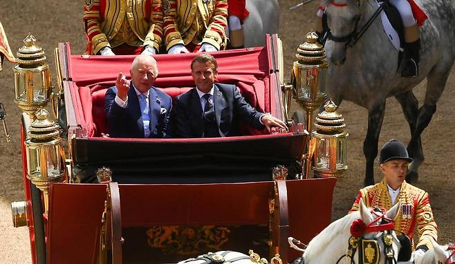 마크롱, 英 브렉시트후 EU정상 첫 국빈방문… 왕실 마차 환대