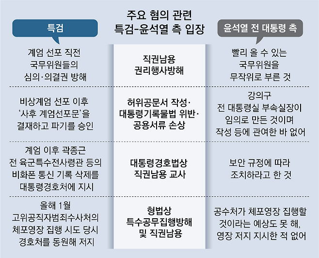 특검 “혐의 중대” 尹측 “잘못된 수사”