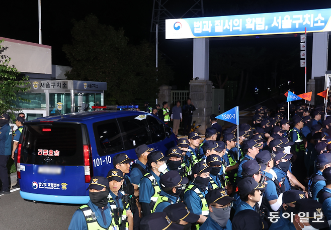 | 호송차 타고 서울구치소로 9일 오후 9시 반경 윤석열 전 대통령을 태운 호송차가 경기 의왕시 서울구치소로 들어서고 있다. 윤 전 대통령은 심사 결과가 나올 때까지 구치소 내 피의자 대기실에서 머물렀다. 의왕=신원건 기자 laputa@donga.com |