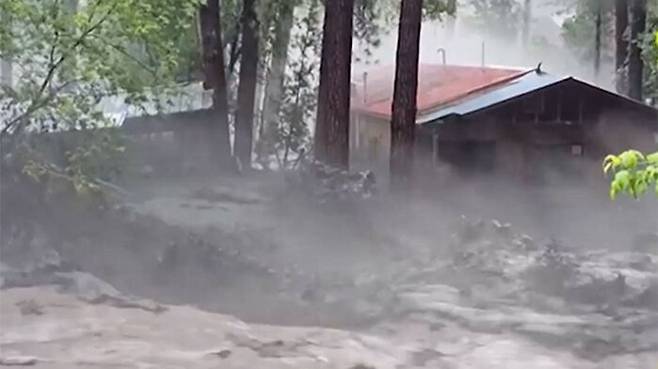 당시 지역 주민 케이틀린 카펜터가 강변에서 급히 대피하며 촬영한 영상에는 맹렬한 기세로 쏟아져 내리는 급류에 집 한 채가 통째로 떠내려가는 모습이 담겼습니다.