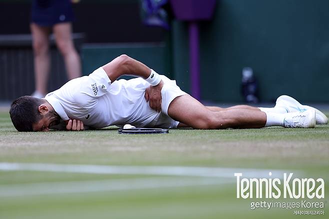 <사진. 4세트 막판 위험하게 넘어졌던 조코치비 / 게티이미지코리아>